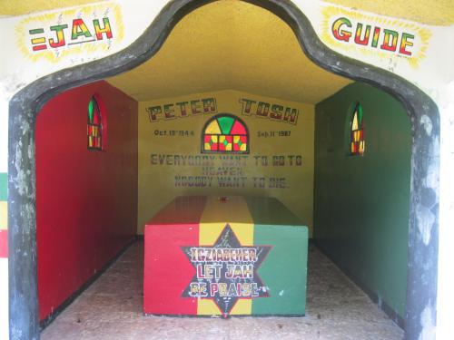 On the other side we came to Peter Tosh’s Mausoleum. It’s hidden behind Prince’s restaurant and we could have driven past it if we hadn’t stopped to ask directions.
