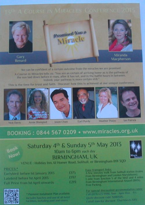 I went to the 13th annual ACIM (A Course in Miracles) conference at the weekend. Although I’ve been doing the course for a while it was my first ACIM event. The only speaker I’d heard of was Gary Ranard, the author of The Disappearance of The Universe.